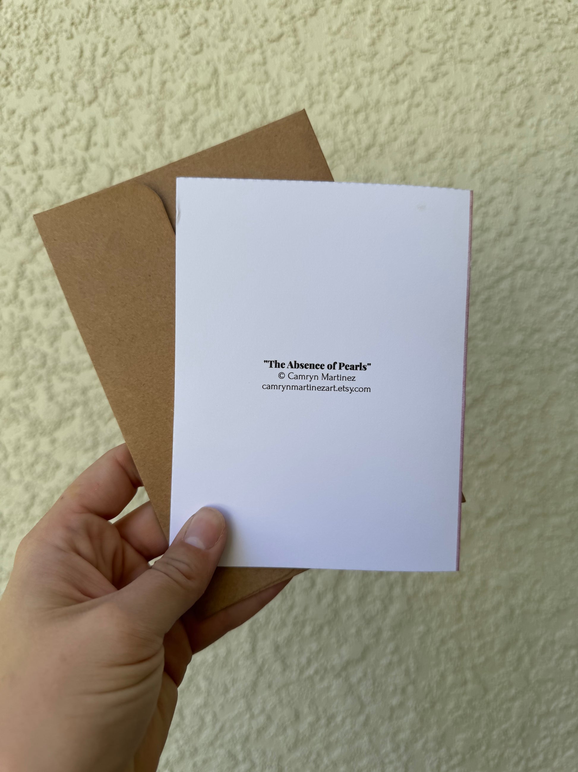 Approximately 4.2" x 5.5" fine art greeting card with artwork by Camryn Martinez