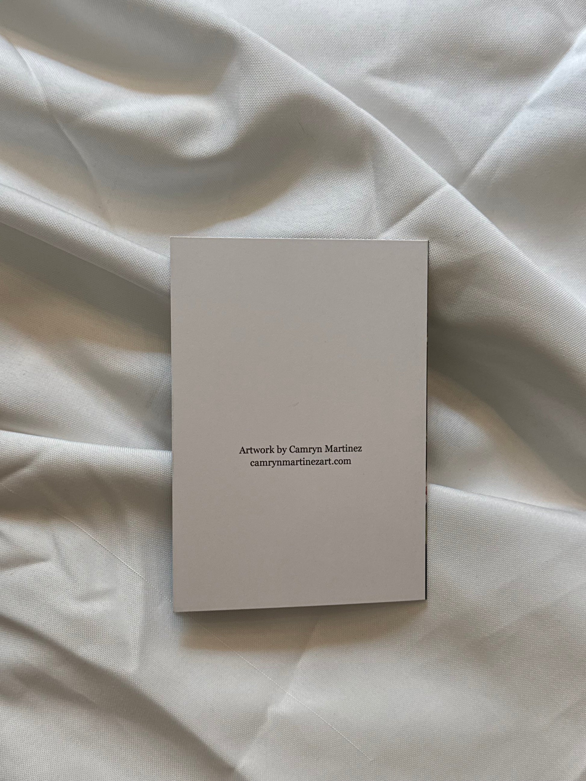 Approximately 4.13" x 5.83" fine art greeting card with artwork by Camryn Martinez
